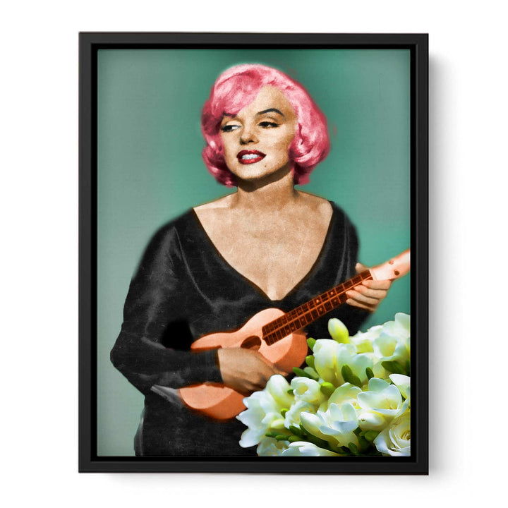 Marilyn Monroe with pink hair plays a ukelele in this photorealistic portrait painting with stunning appeal. The colours evoke living realism and the expression on the star's face captures her much praised personality and beauty. A wonderful addition to your favoured room.
